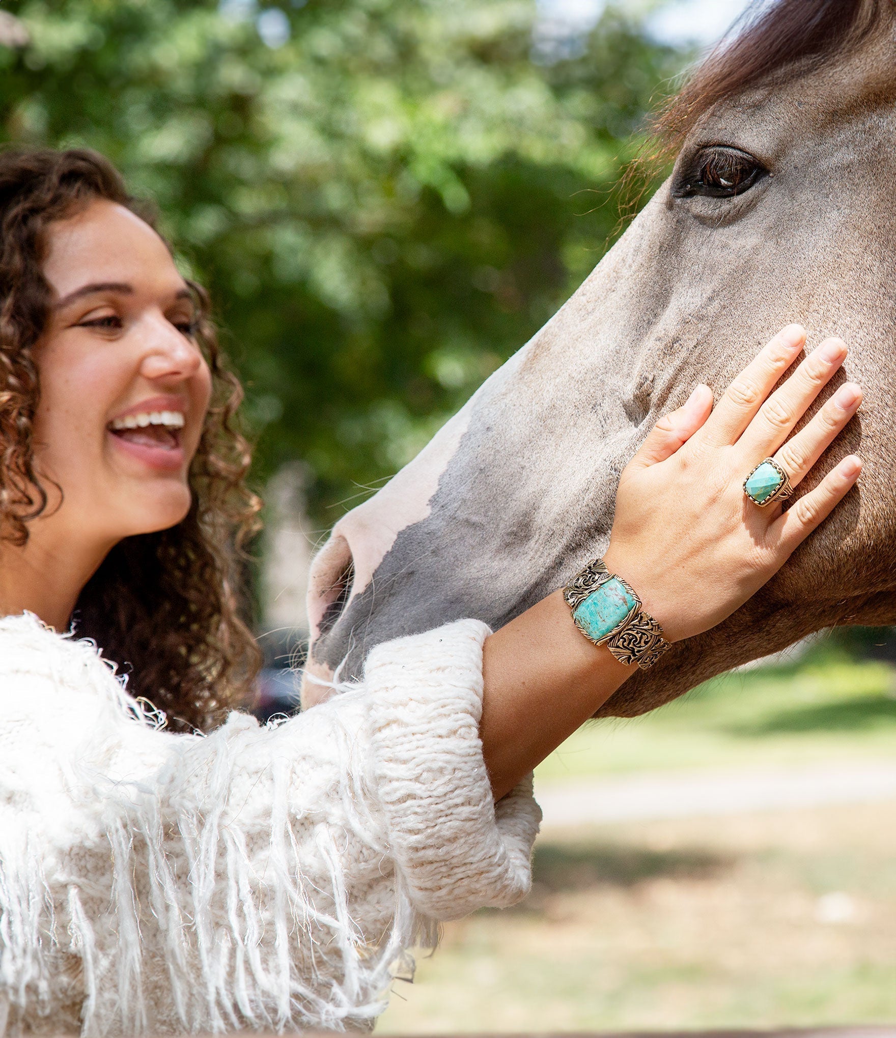 Adorn yourself in timeless beauty with this exquisite Jacquard Turquoise Solid Cuff Bracelet, featuring genuine bronze and turquoise in ornate detailing. This piece of wearable art is 2.5" inner diameter, with a stone of 1.25" x 1". Elevate your look with this stunning bracelet!