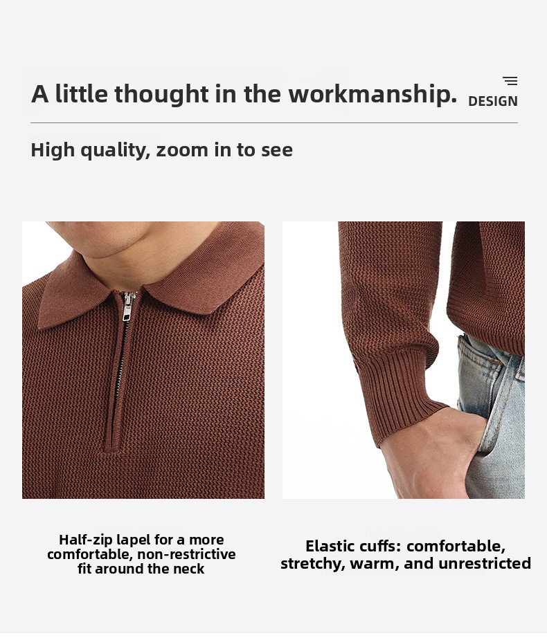 Versatile Style: Polo collar and zip-front design suitable for casual and light business occasions.