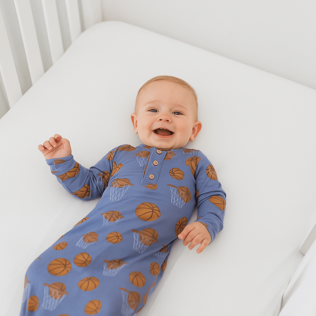 Our knotted gown is perfect for that special homecoming outfit. A close fit design for comfort and security. Finished with a deep front placket and knot closure for super easy diaper changes!