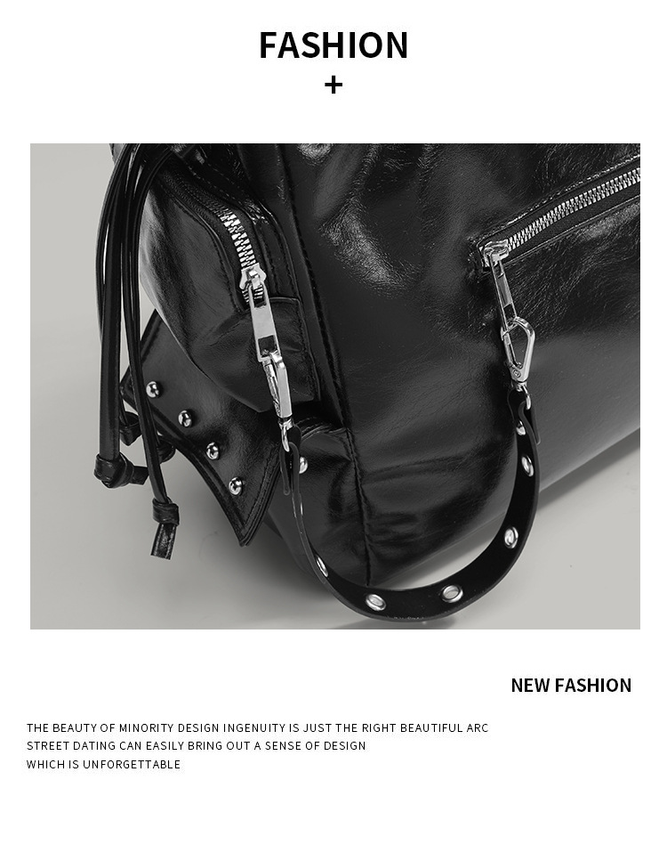 Stylish Design: Korean niche trendy brand bag with a retro rivet motorcycle style.