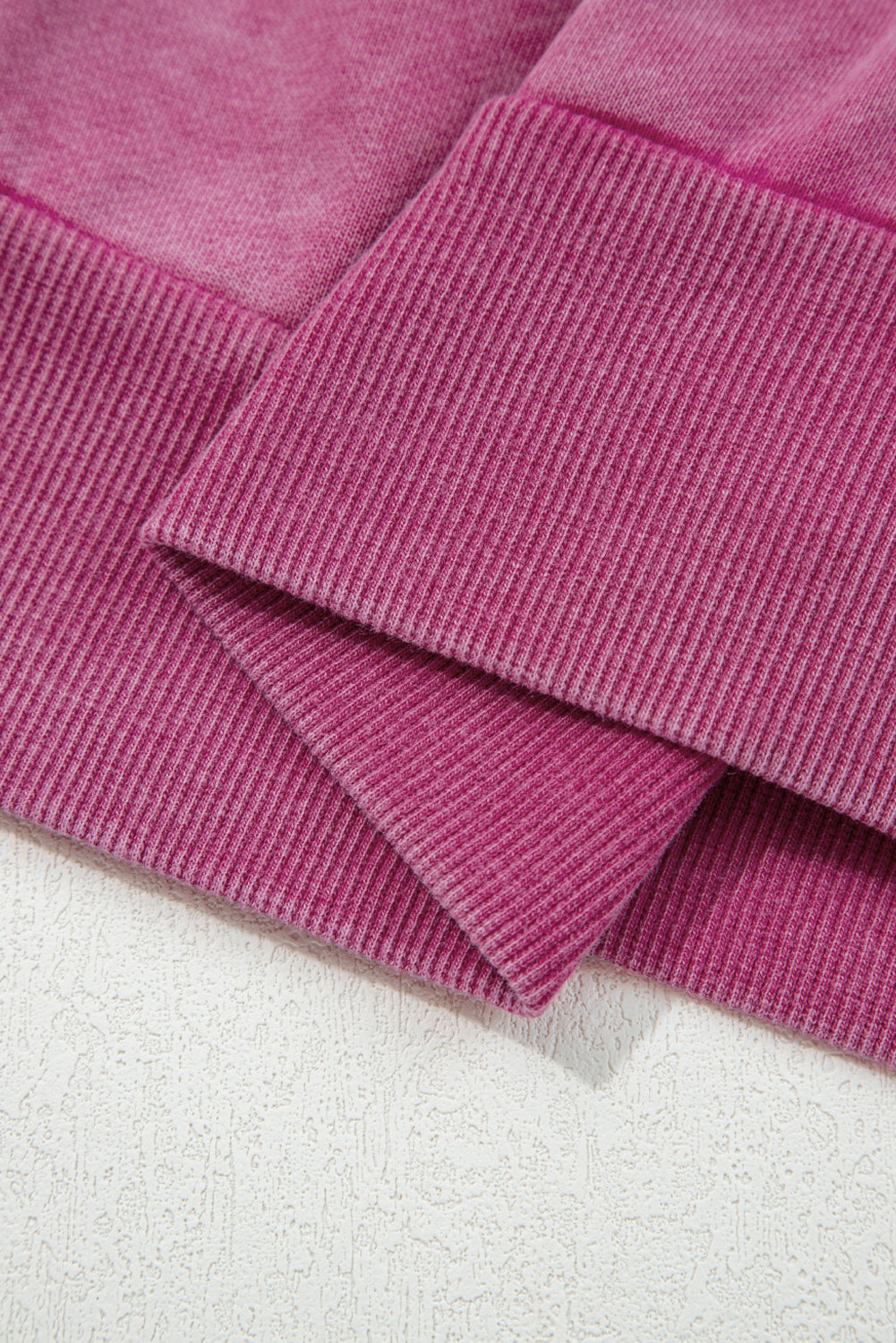 Lace Patchwork Mineral Wash Notched Neck Sweatshirt