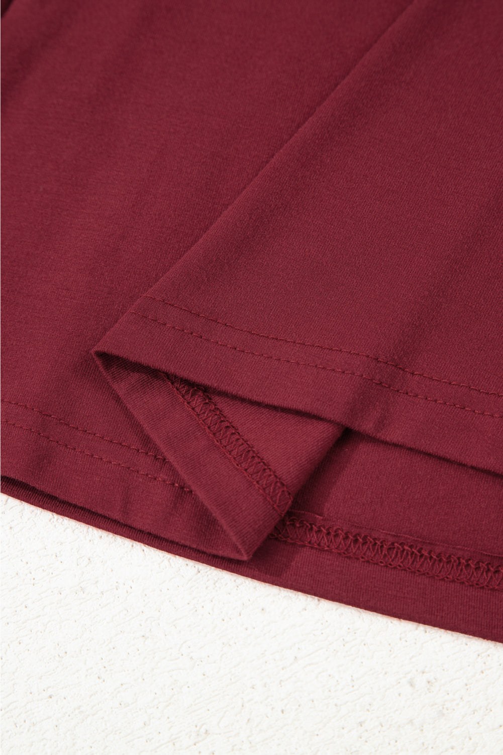 Elevate your look with this top, featuring a charming neckline adorned with delicate lace trim and a ruched detail that adds a flirty touch. Crafted from soft, stretchy fabric, it slips on effortlessly for all-day comfort. Perfectly pairs with your favorite jeans and gold accessories for a fun, stylish outfit. Viscose/Spandex