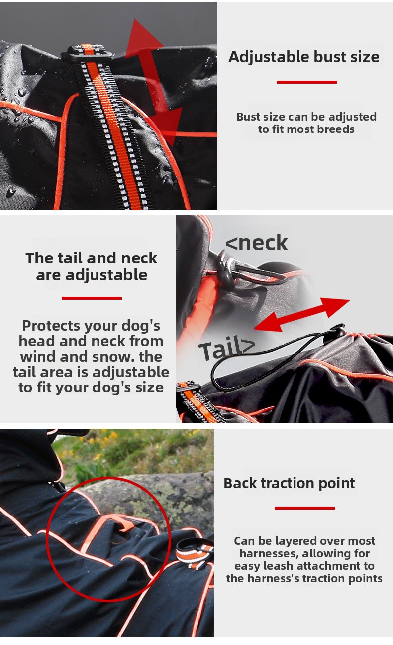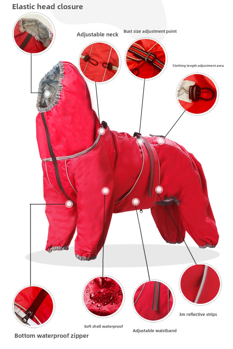 Waterproof Design: Full-body coverage with waterproof material to keep dogs dry in wet conditions.