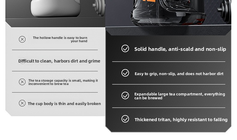 Tea-Water Separation: Unique design allows separate compartments for tea and water.
