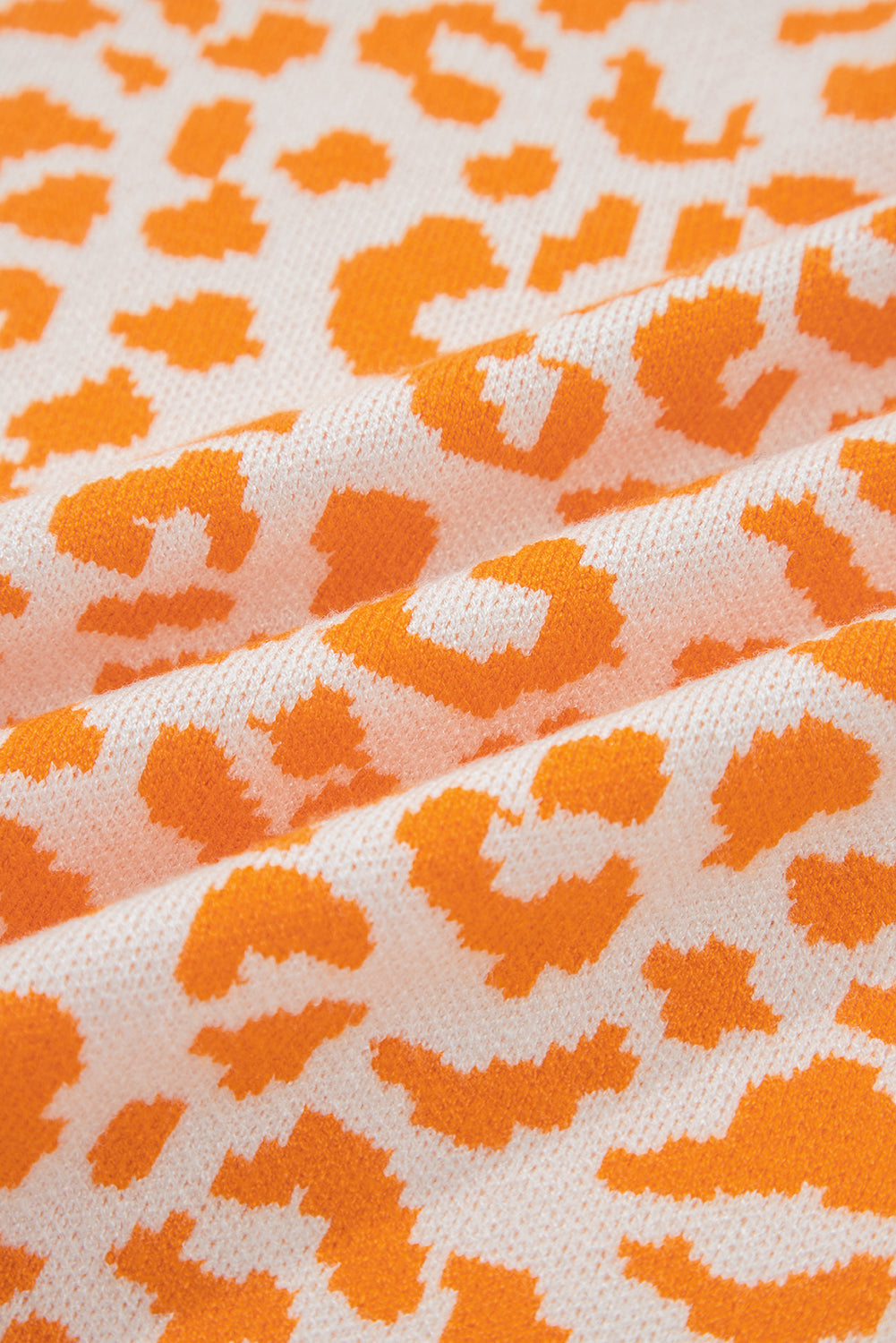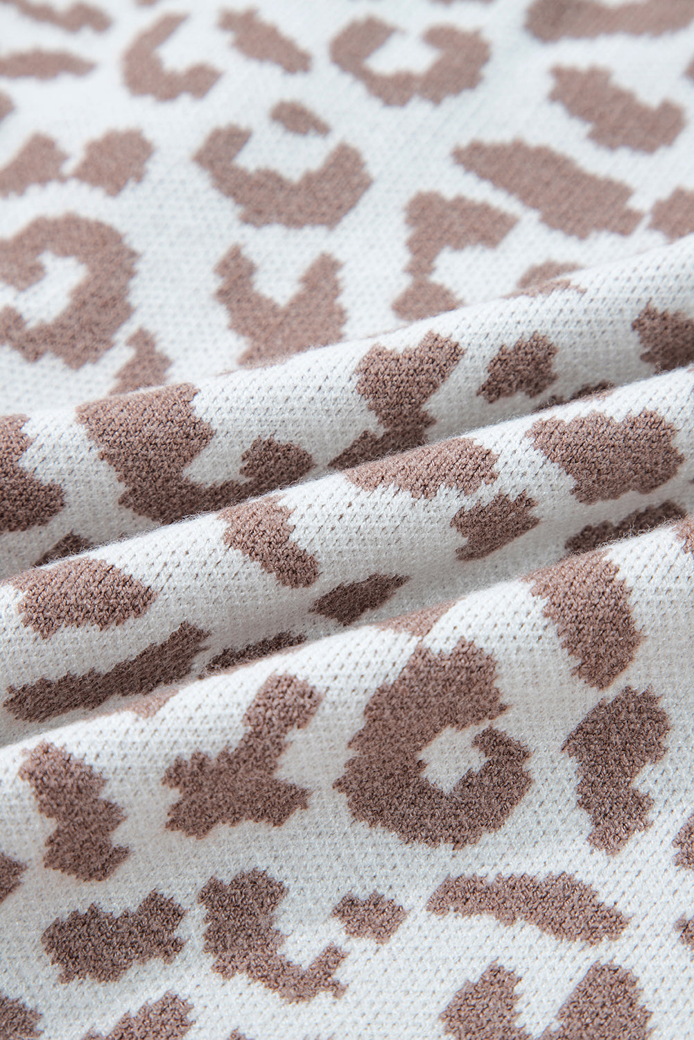 Leopard Drop Shoulder Chunky Cardigan Sweater