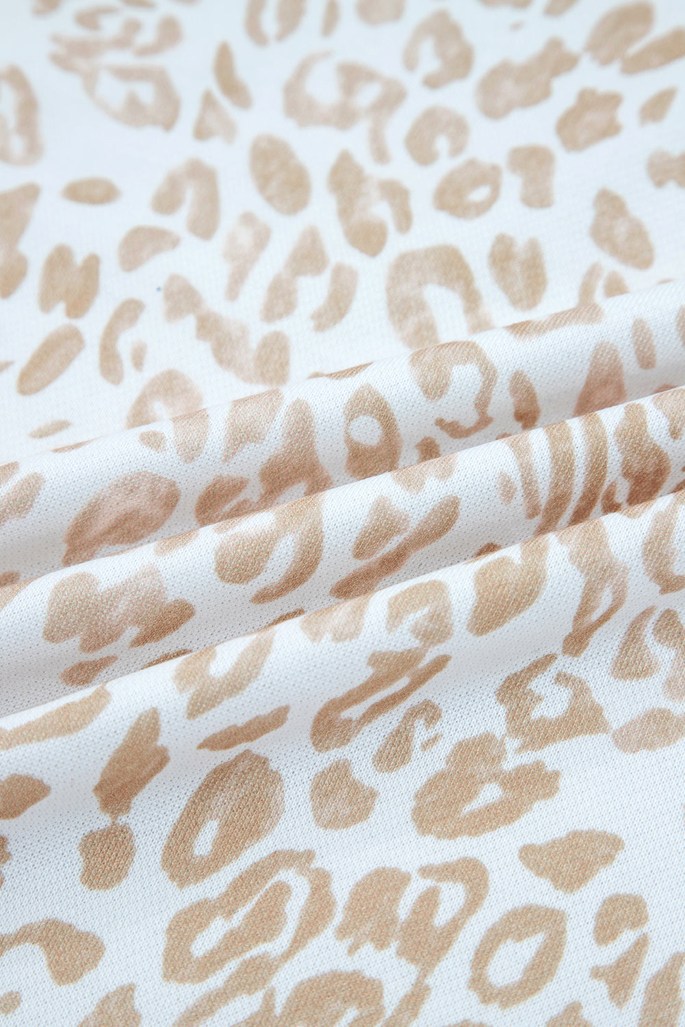 Leopard Ruffle Ribbed Trim Round Neck Sweatshirt