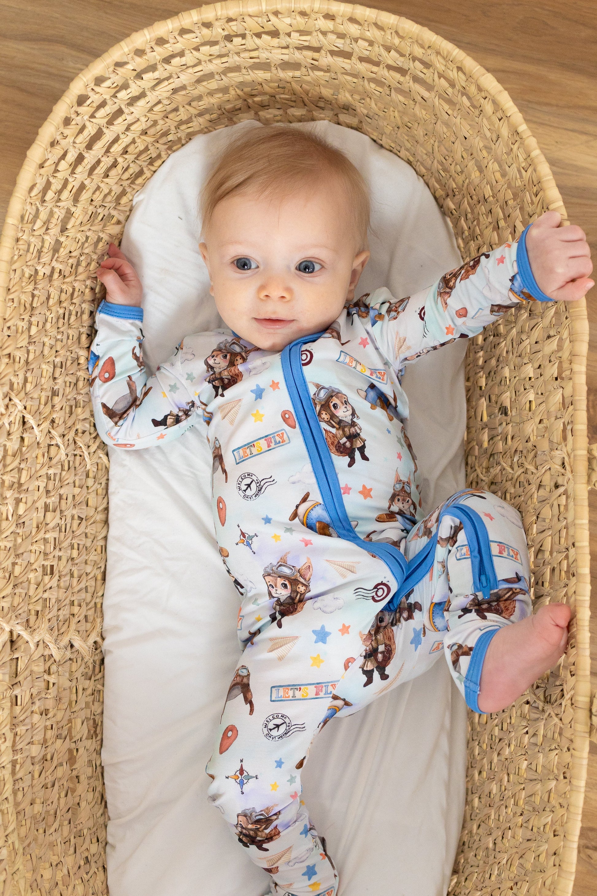 Our zippies are designed to withstand the test of time, thanks to their high-quality double zippers that make diaper changes a breeze. With fold-over feet catering to all sizes, these zippies ensure a snug and lasting fit. Plus, for sizes NB and 0-3, we've included fold-over mittens for that extra touch of warmth.