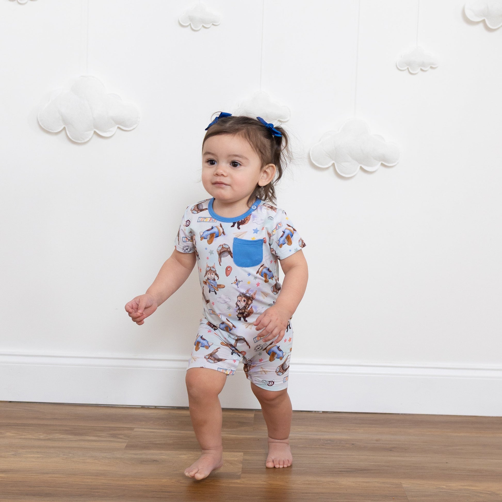 Simplify diaper changes with the convenient 5-snap bottom closure, while the lightweight 240gsm bamboo fabric ensures optimal comfort for all-day wear.