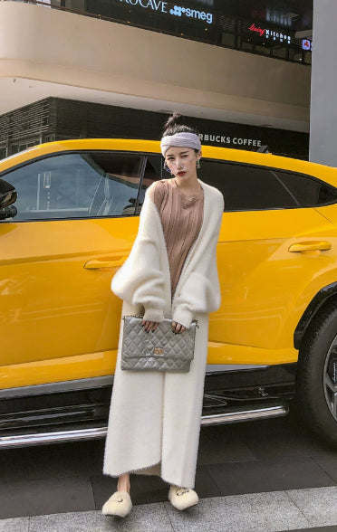Unveil your effortless elegance with our stunning long cardigan, designed to envelop you in warmth and style. Crafted from luxurious rabbit hair, this cardigan is not just a piece of clothing; it's a statement of comfort and sophistication.