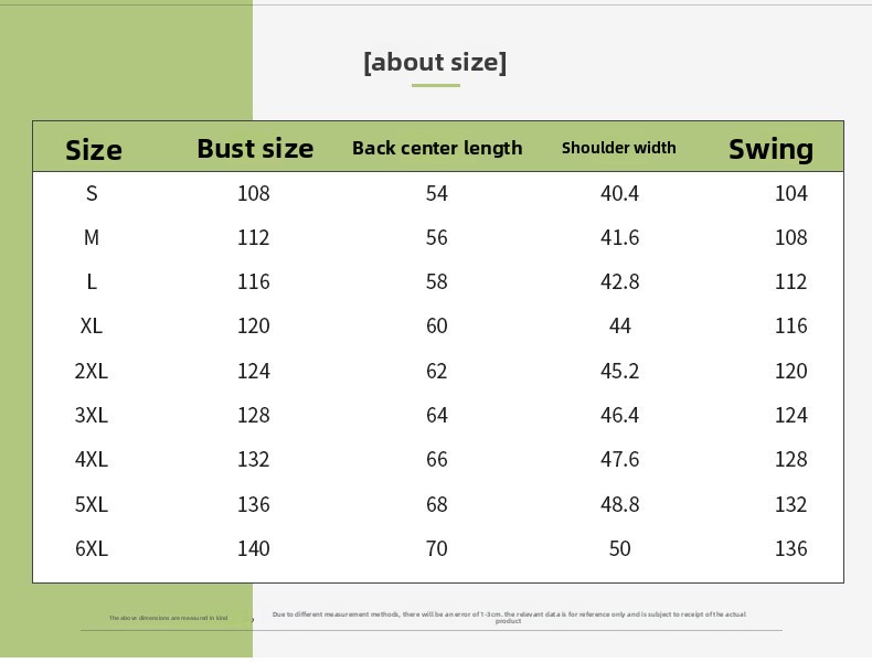 Sizes: S, M, L, XL, 2XL, 3XL, 4XL, 5XL, 6XL.