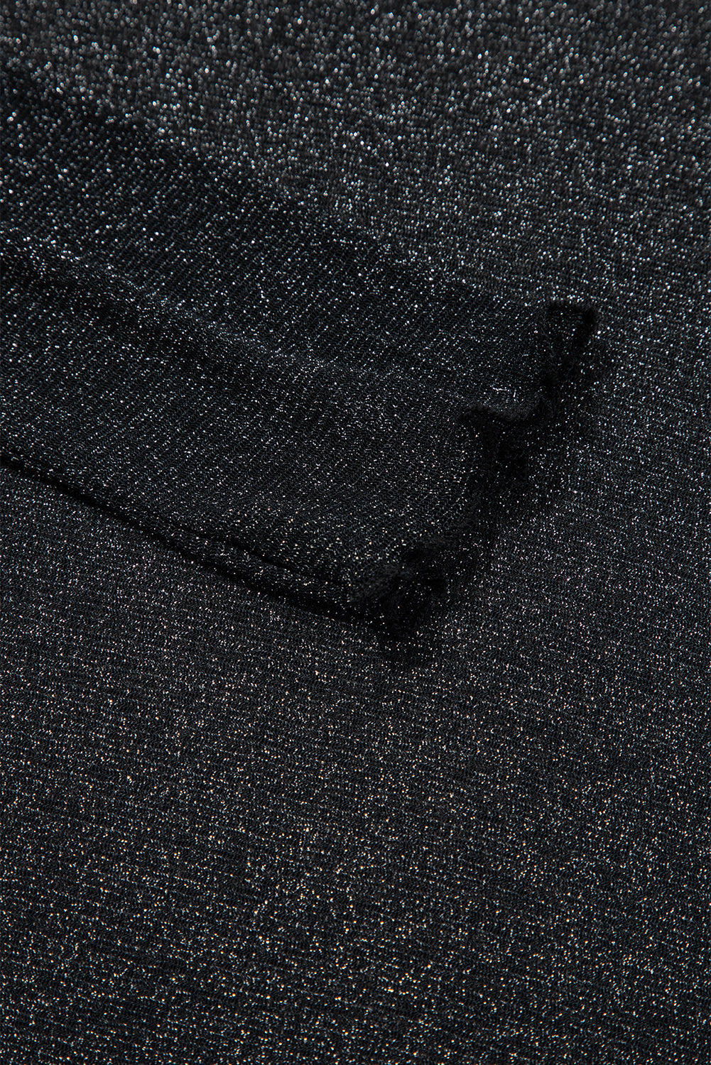 Elevate your look with this top, featuring shimmering glitter that catches the light effortlessly. Crafted from breathable mesh fabric, it ensures comfort throughout wear while the sleeves provide sophisticated coverage. Its sleek slim fit design contours your silhouette for a polished, refined appearance ideal for any stylish occasion. Cotton/Polyester/Spandex