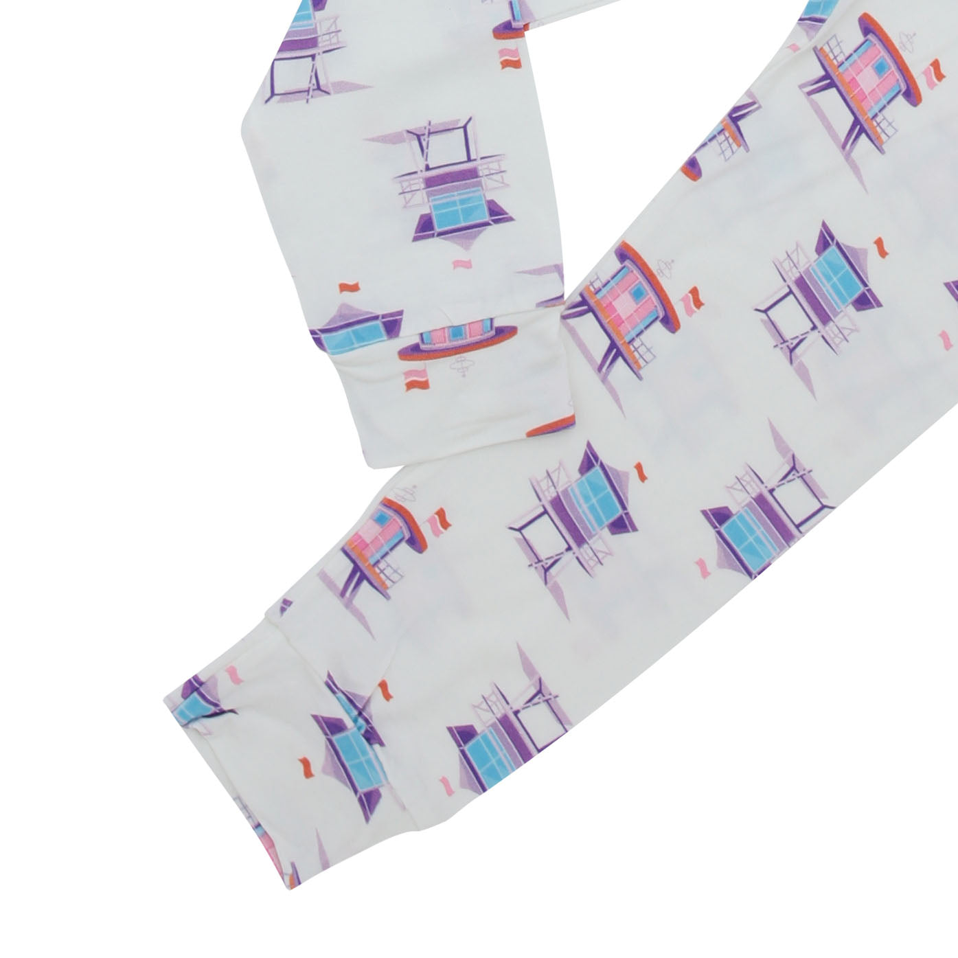 Upgrade your toddler's sleepwear with our super soft bamboo two-piece set! Our Beach Watch Pink pajama set is inspired by the iconic lifeguard towers of Miami Beach. This pink, purple color combination is perfect for the beach lover in your life! A unique and adorable print, give the gift of a good night's sleep!