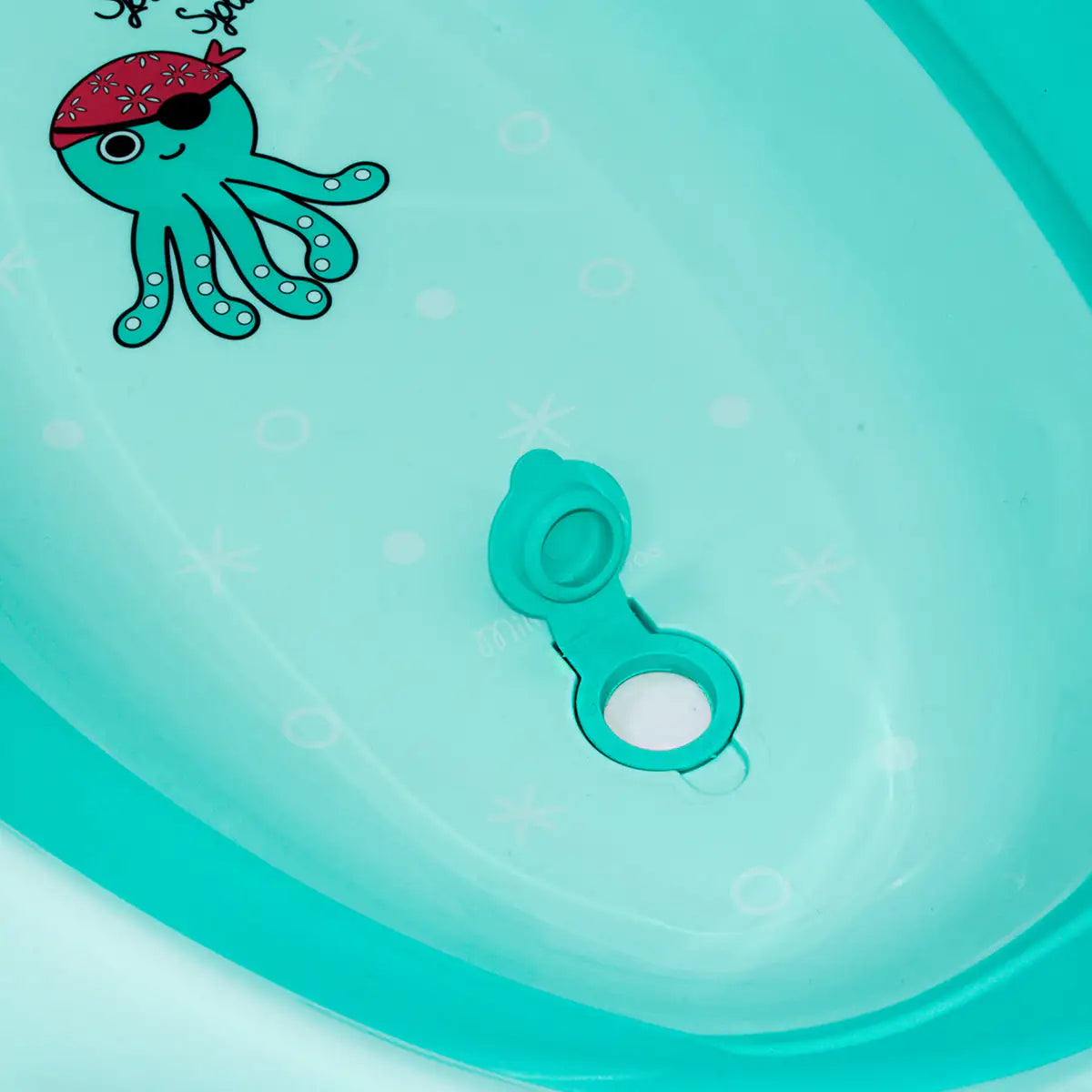 CONVERTIBLE INFANT BATHTUB: This newborn bathtub gently supports 0-6 month old infants in a reclining position, making it suitable for newborns. Then, once baby is able to sit independently, it also acts as a support for toddlers. Head and back support fit their bodies comfortably and making it easier for you to use both hands for washing. The plastic is textured on the bottom of the tub so that baby doesn’t slip around as much. It’s got a cute octopus design to keep little ones engaged and enjoy water.