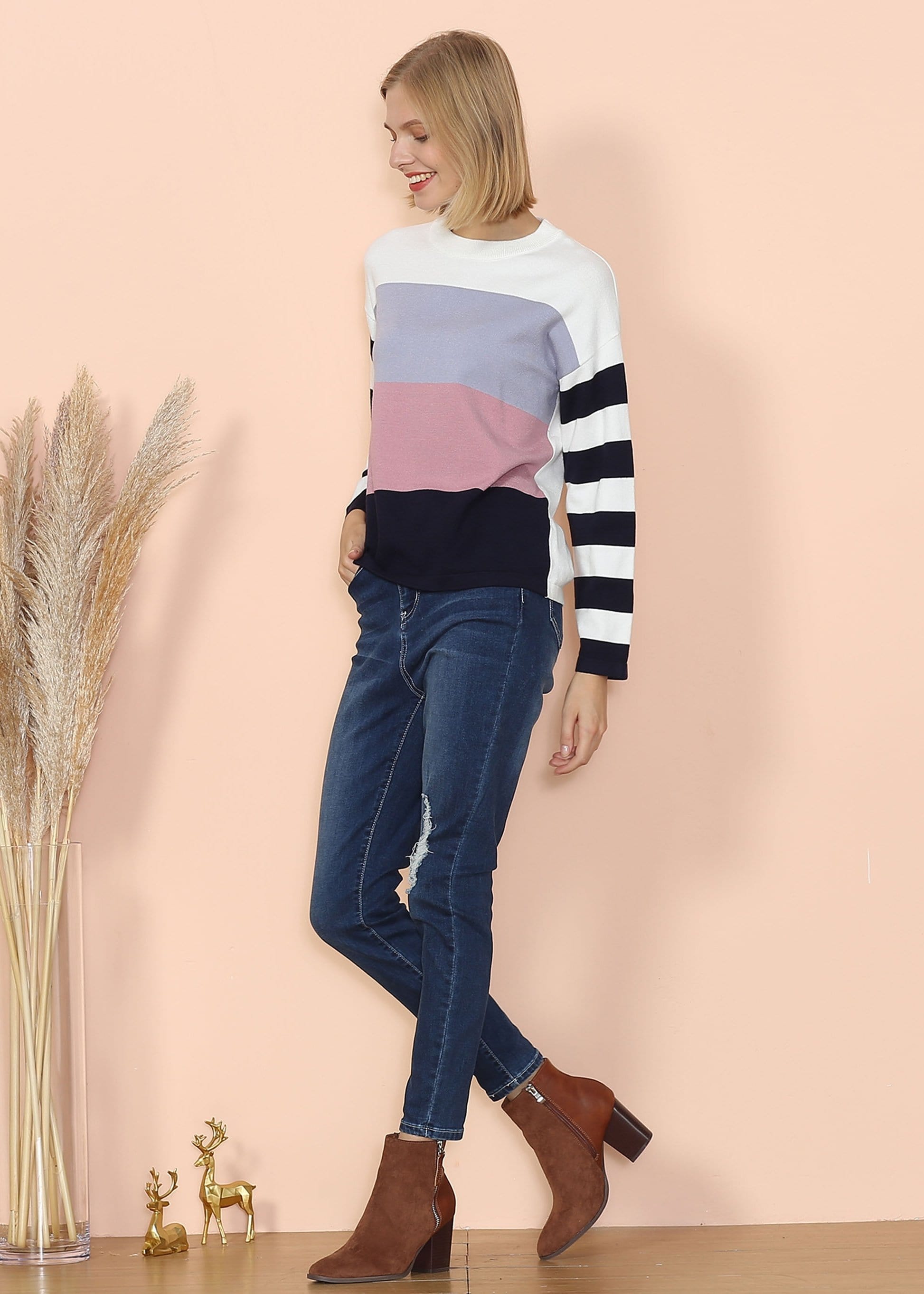 ??he Anna-Kaci top is detailed with fun mixed stripes of different colors and sizes. Features a round neck line, long sleeves, and regular fit. Pair it with your favorite denim jeans and sneakers for a casual go-to look.