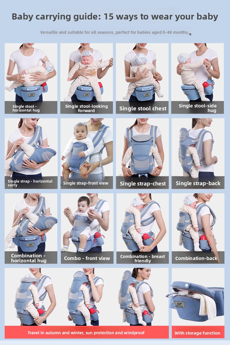 Multi-functional: Supports horizontal carrying, back carrying, and storage options for versatile baby care.