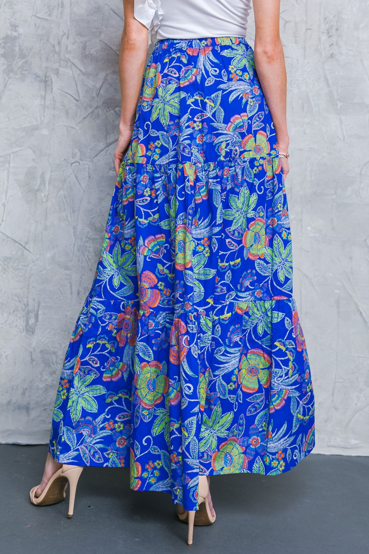 The NO MATTER WHERE I GO WOVEN SKIRT is a stylish addition to any wardrobe. This printed skirt is composed of a woven fabric, with an elasticated waistband and tiered design. The skirt is breathable and lightweight, making it perfect for all-day wear. Its fashionable tiered design is also sure to turn heads.