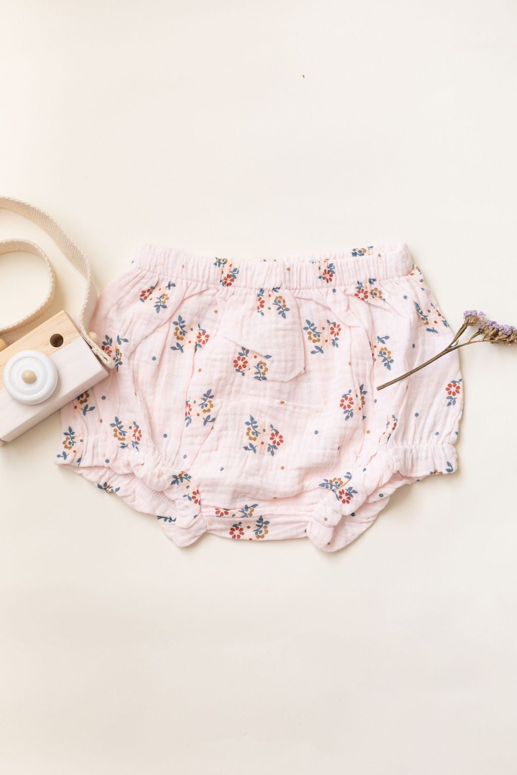Pink Floral Prints: The dress in this set features a lovely floral print in shades of pink, adding a whimsical and feminine touch to your baby's ensemble. The matching bloomers complete the look with coordinating style.
