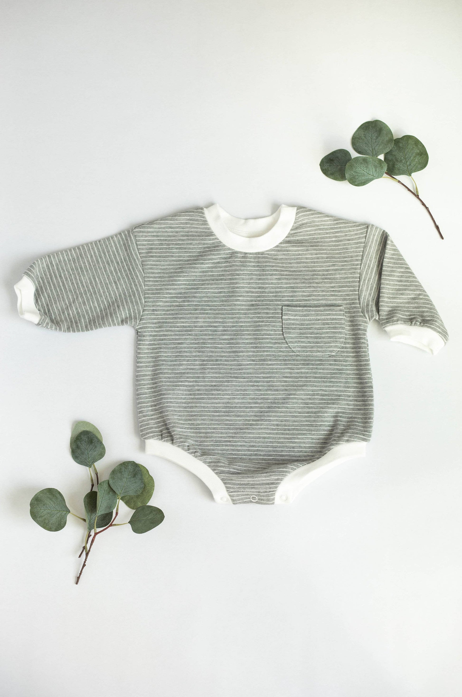 Featuring longer sleeves, a higher neckline, and easy-access bottom snaps, it ensures your little one stays cozy while making diaper changes quick and simple. The casual yet stylish design makes it perfect for everyday wear or as a thoughtful baby shower gift.