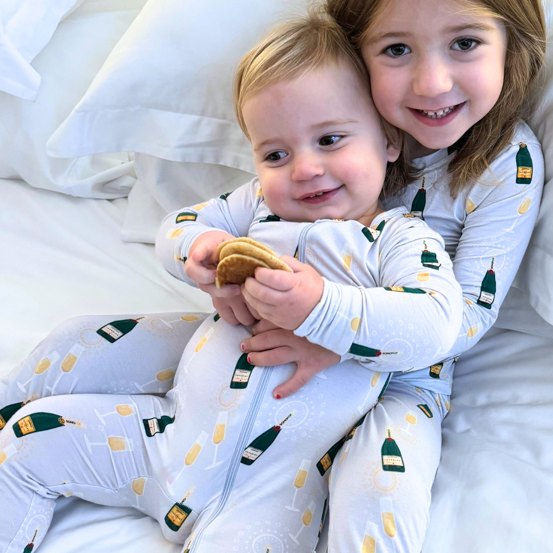 Upgrade your toddler's sleepwear with our super soft bamboo two-piece set! Our Paris Champagne pajama set is inspired by celebrating life’s little moments. We love the soft gray background with the rich green and gold champagne bottle details. Whatever it is you’re celebrating today, we cheers to you!