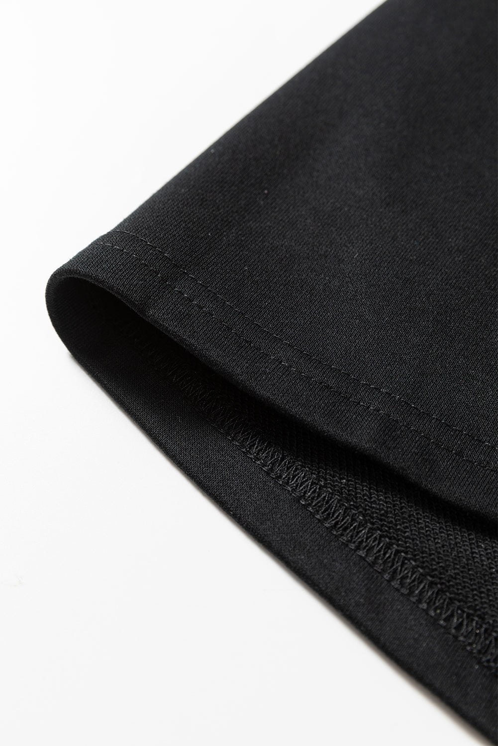 This two-piece set pairs a sleek crewneck pullover with a high-waisted mini skirt, both in a solid black accented by contrasting piping for a refined edge. The pullover offers effortless style with its easy, pull-on design, while the elastic waistband of the skirt ensures a comfortable, flattering fit. Perfect for versatile wear, this ensemble balances casual ease with polished detail. Polyester/Cotton