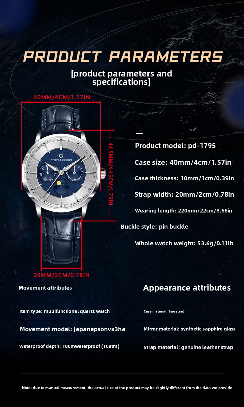 PD-1795 Multifunctional Quartz Waterproof Men's Watch