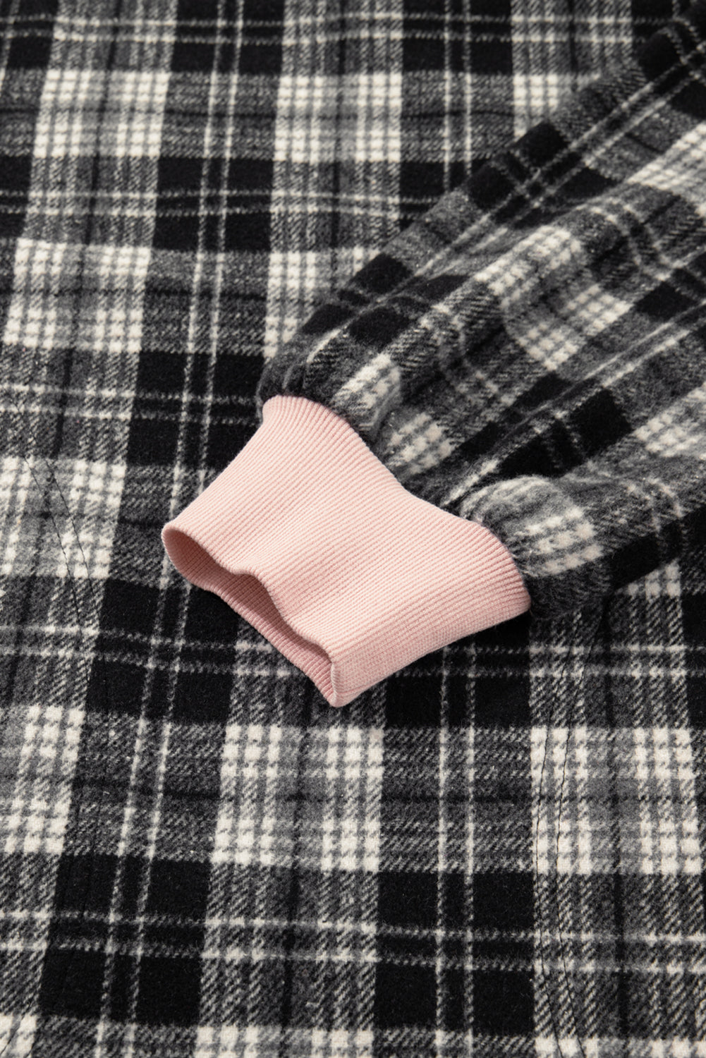 Plaid Collared Zip-Up Long Sleeve Mini Dress
