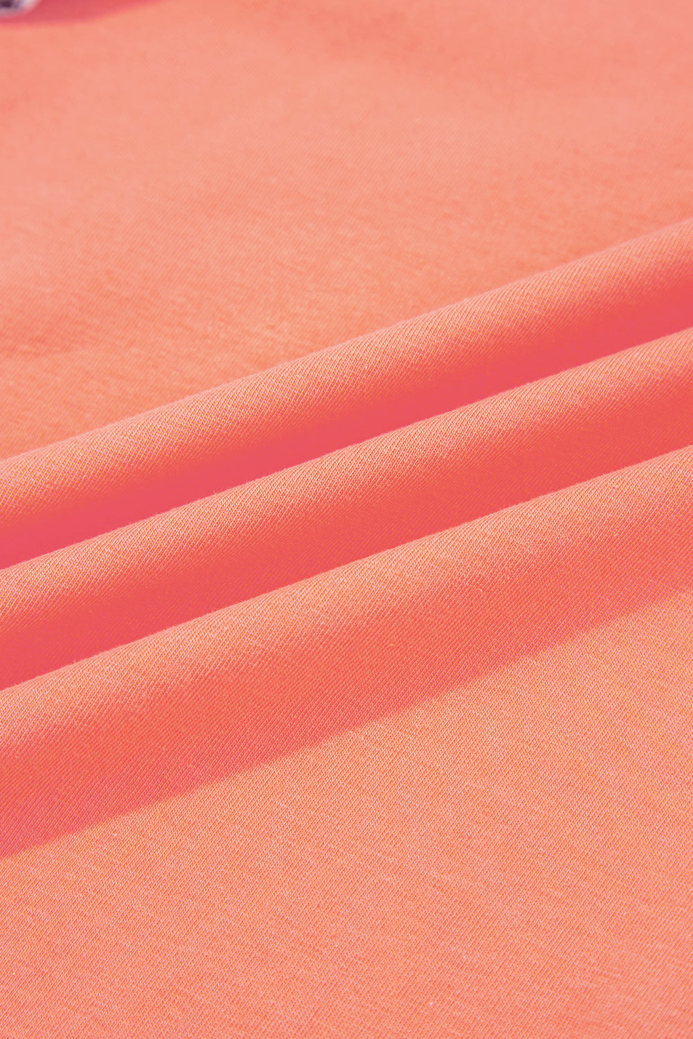Plaid Flower Waffle Knit Patchwork 3/4 Sleeve Top