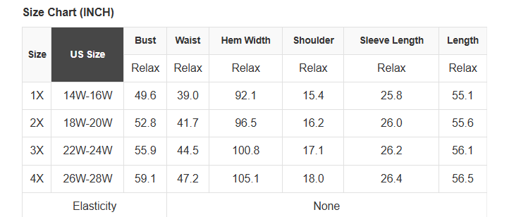 Plus Size Info: See size chart for approximate measurements
