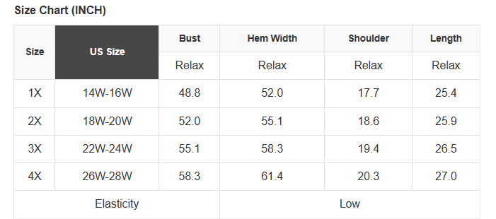Plus Size Info: See size chart for approximate measurements