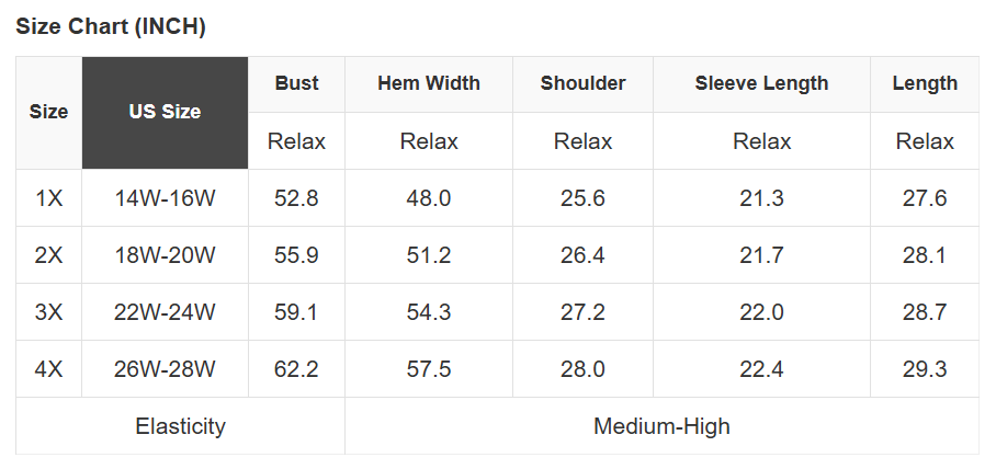 Plus Size Info: See size chart for approximate measurements