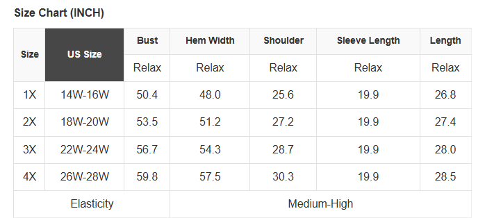 Plus Size Info: See size chart for approximate measurements
