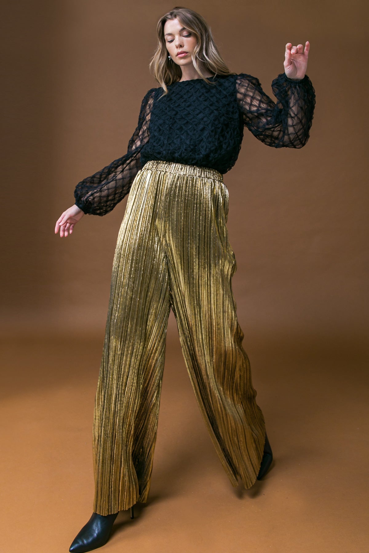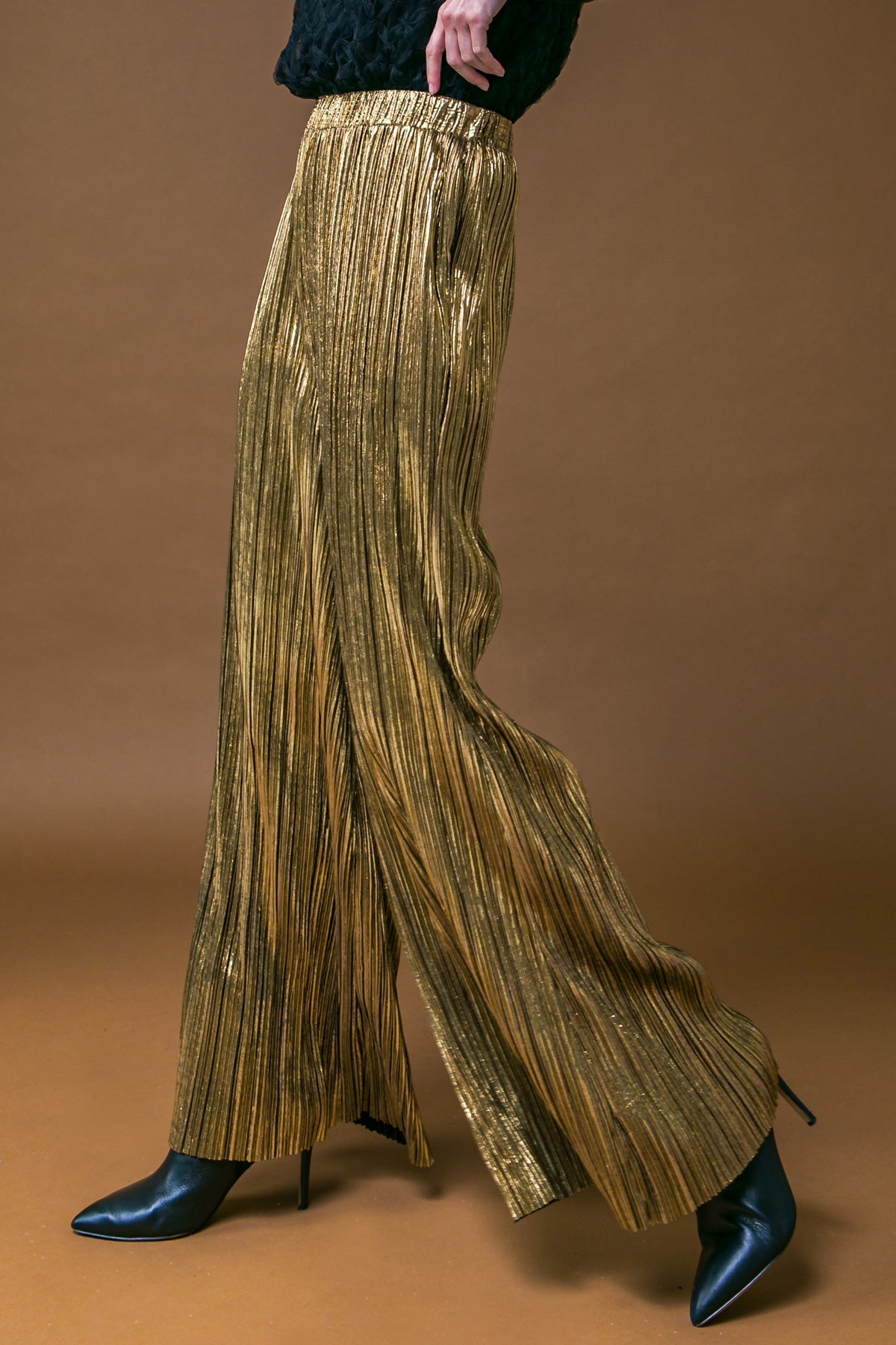Experience ultimate comfort with the PORCH SWING KISSES WOVEN PANTS. These wide-leg pants feature a unique pleated style that creates a figure-flattering silhouette. The elasticized waistband ensures a secure fit for all-day wear. Transform any outfit with this timeless classic.