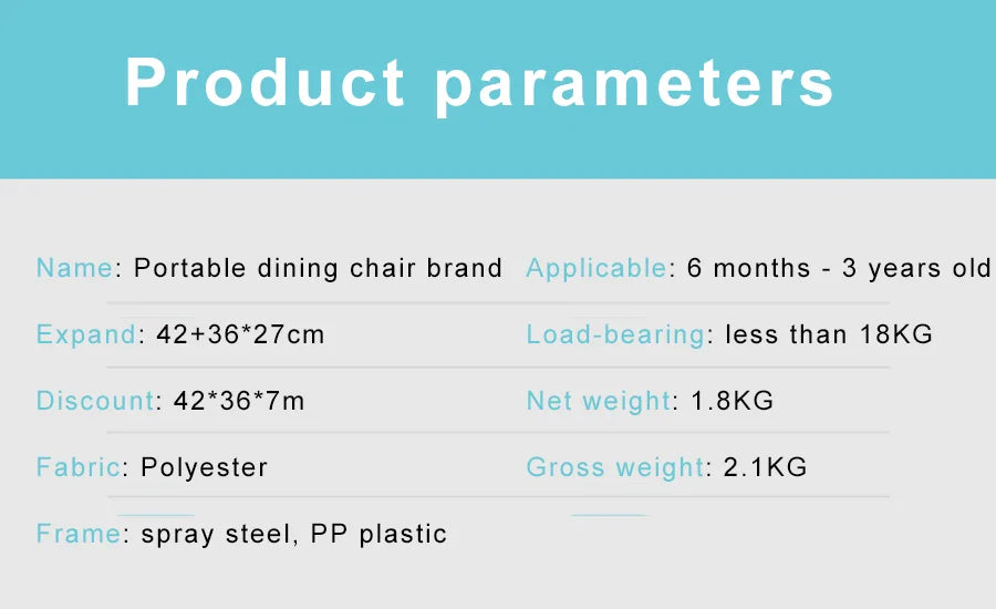 Experience versatility and portability with the Portable Baby Dining Chair, ideal for home use, outings, or visits to family and friends.