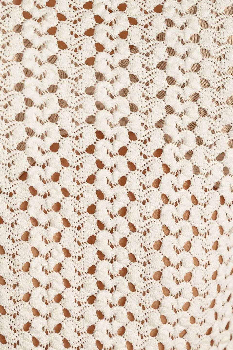 A white knit top with a round neckline, featuring short sleeves and a semi-sheer design. Matching pant FP1400