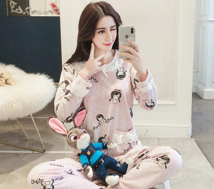 Pure Cotton Maternity Pajama Set for Nursing Mothers - # BAGE211510128-NURSG