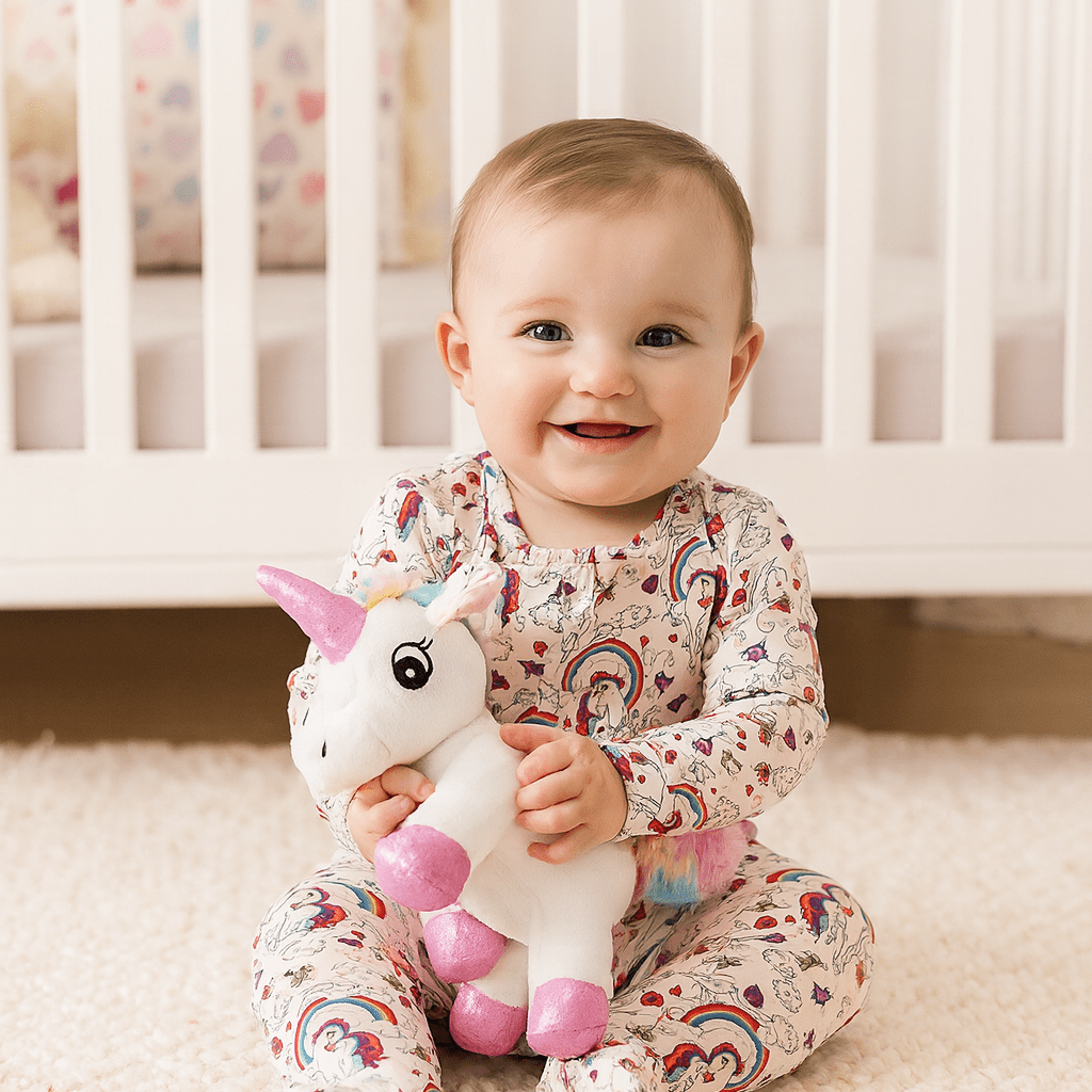 Ask and you shall receive. This yummy footie is equipped with a smooth 2-way zipper, silicone grips on the foot pads and fold-over handcuffs. Plus our silky-soft fabric hugs in all the right places to show off those baby curves.