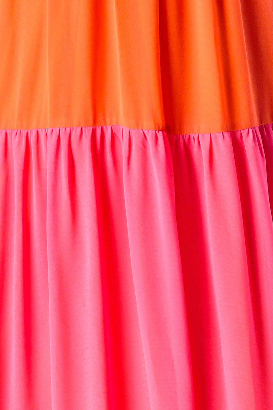 A solid woven color blocked maxi dress featuring cami top with straps, shirred waist band with center hardware, tiered skirt and smocked back waistband