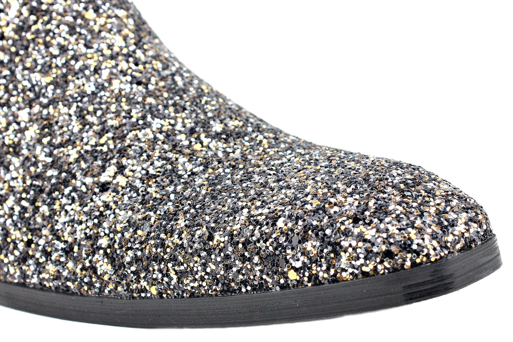 Silver Glitter Side Zipper Heel Chelsea Boots