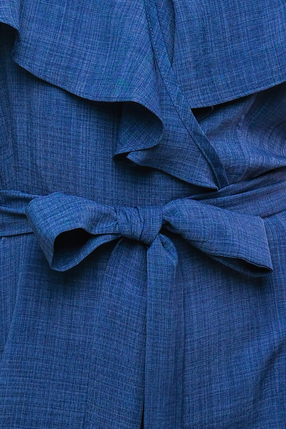 Experience elegance and comfort with the SING ME BACK HOME WOVEN JUMPSUIT. Crafted with a breathable woven fabric, this jumpsuit features a surplice bodice with a self-tie belt, and voluminous ruffled wide-legs for effortless style. Slip into this chic jumpsuit for all-day comfort and fashion-forward flair.