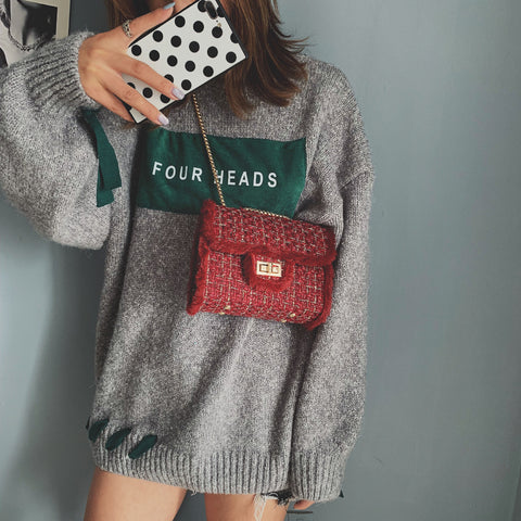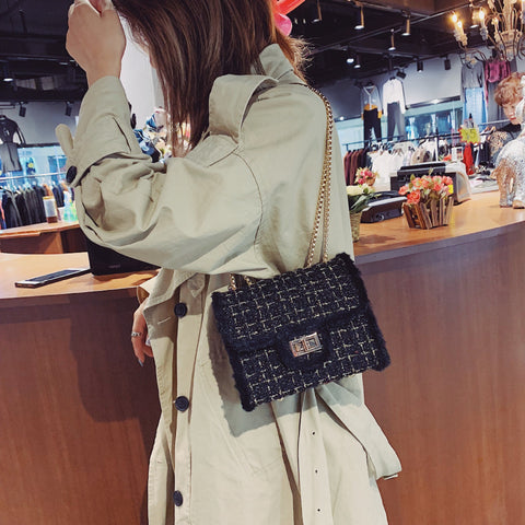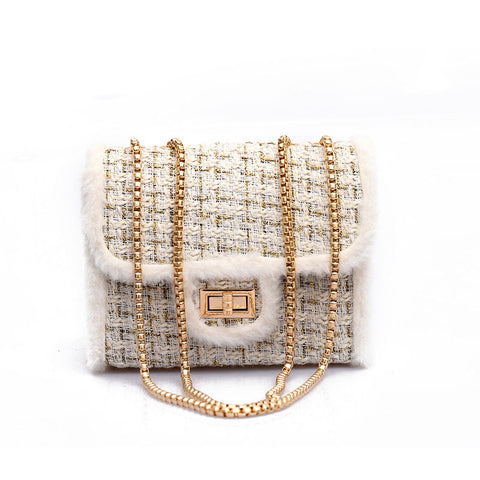 Small chain bag lock closure 2025 autumn and winter with synthetic fur decoration X9178