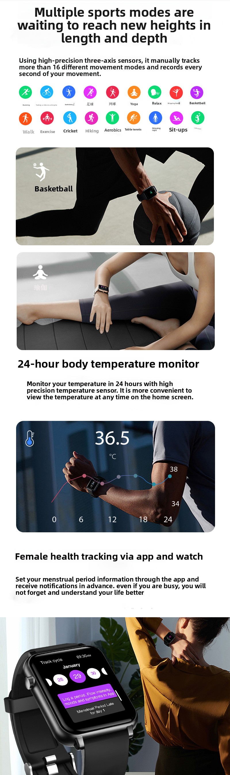 Multi-Functional: Includes step counting, blood oxygen detection, and body temperature measurement.