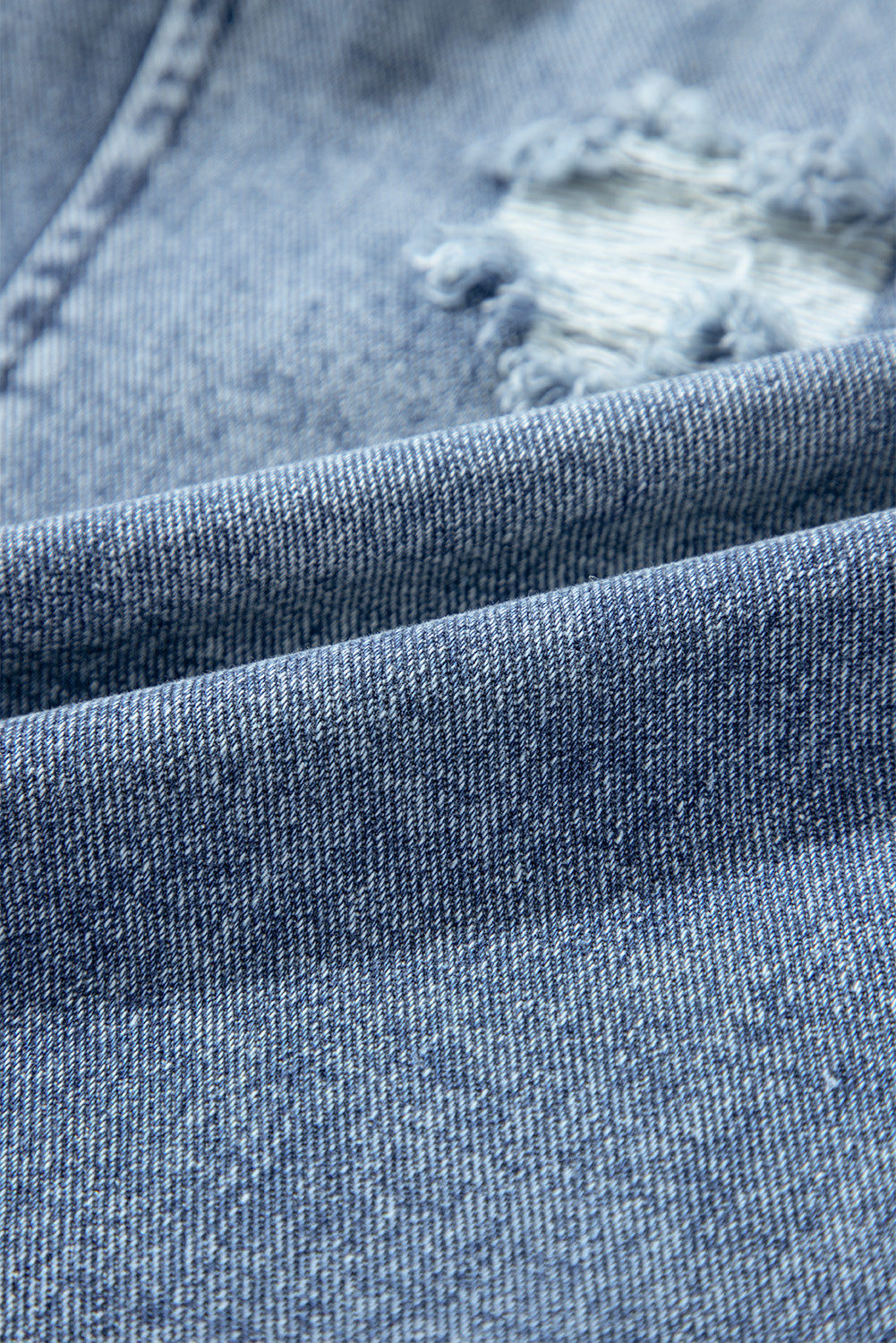 Solid Denim Distressed Bib Pocket Wide Leg Overall