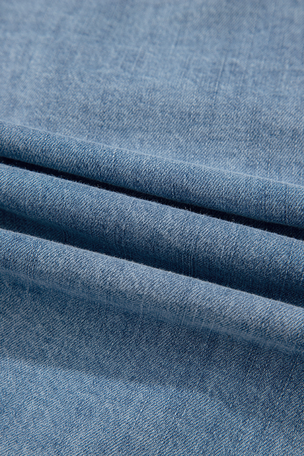 Elevate your wardrobe with this top, designed for those who value both style and substance. Crafted from high-quality denim, this top offers durability and comfort, while its long sleeves create a refined silhouette. The front slits add a subtle edge, and the unique tied front detail brings a sophisticated yet bold statement, making it a versatile piece for chic, confident looks. Cotton/Polyester