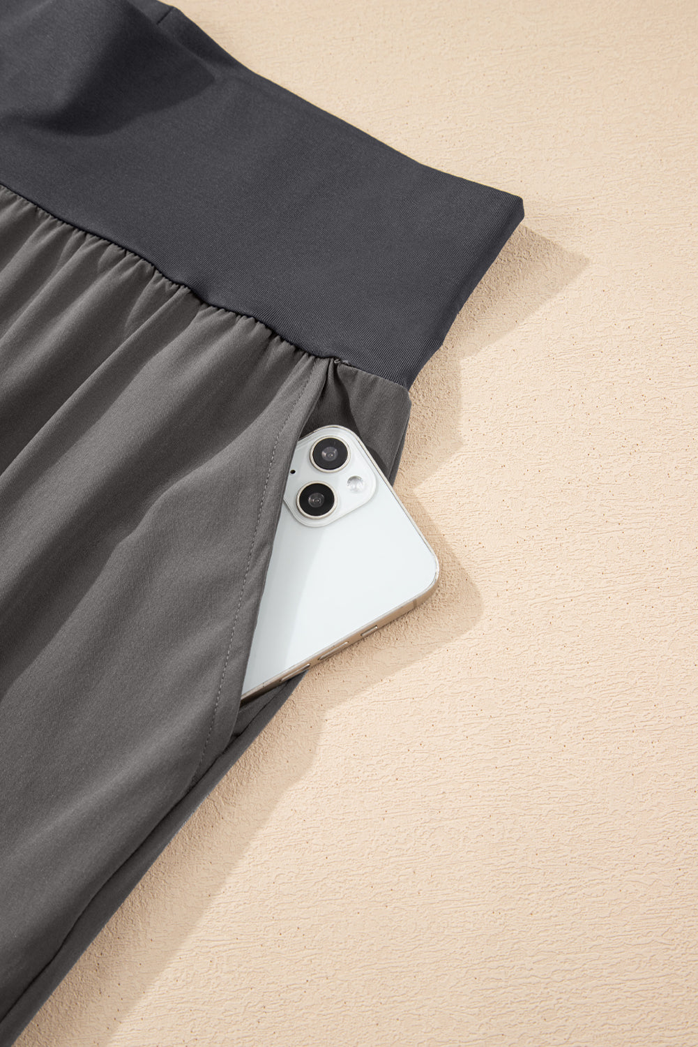 Solid Elastic High Waist Pocketed Cargo Jogger Pants