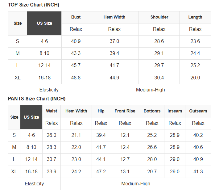 See size chart for approximate measurements.