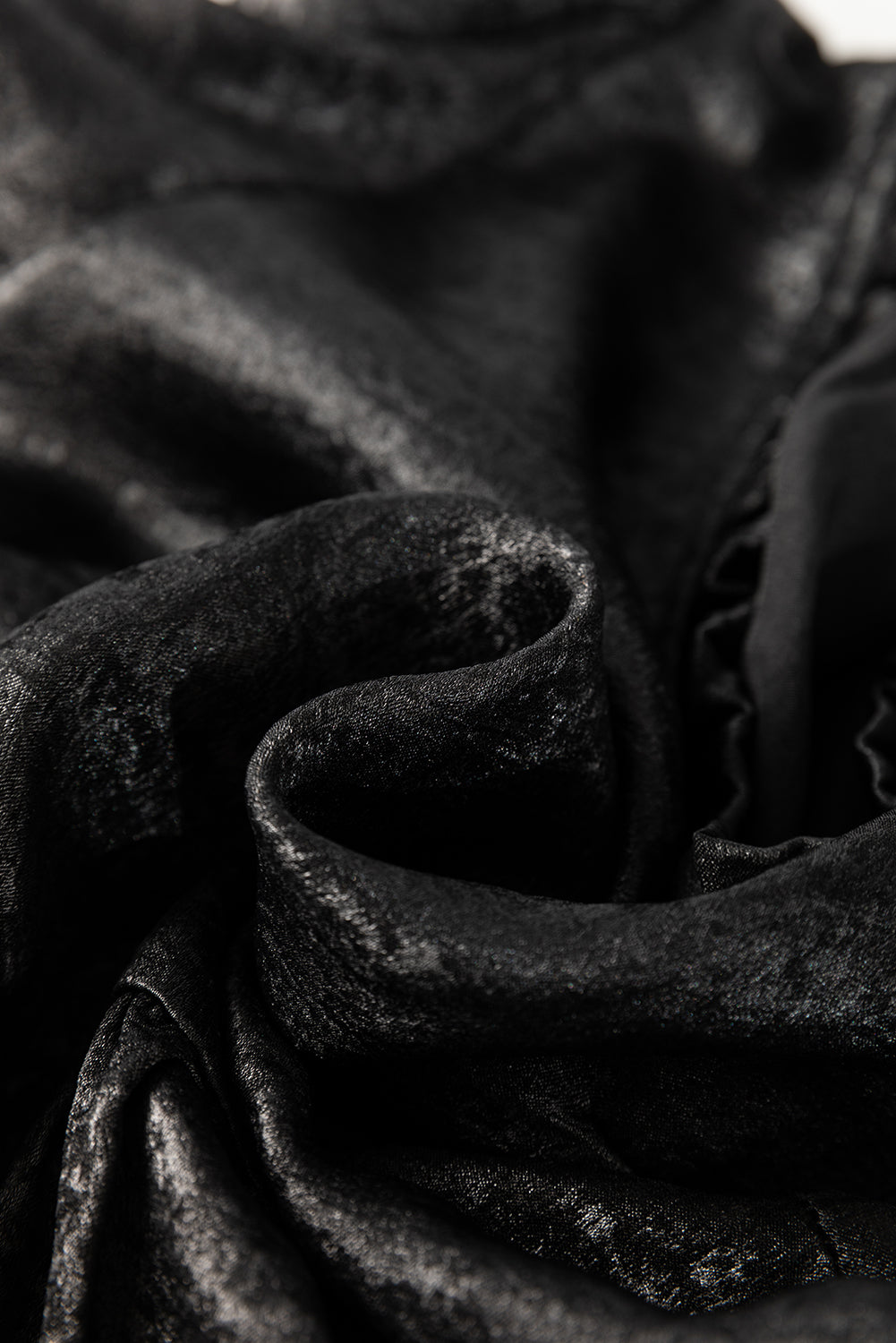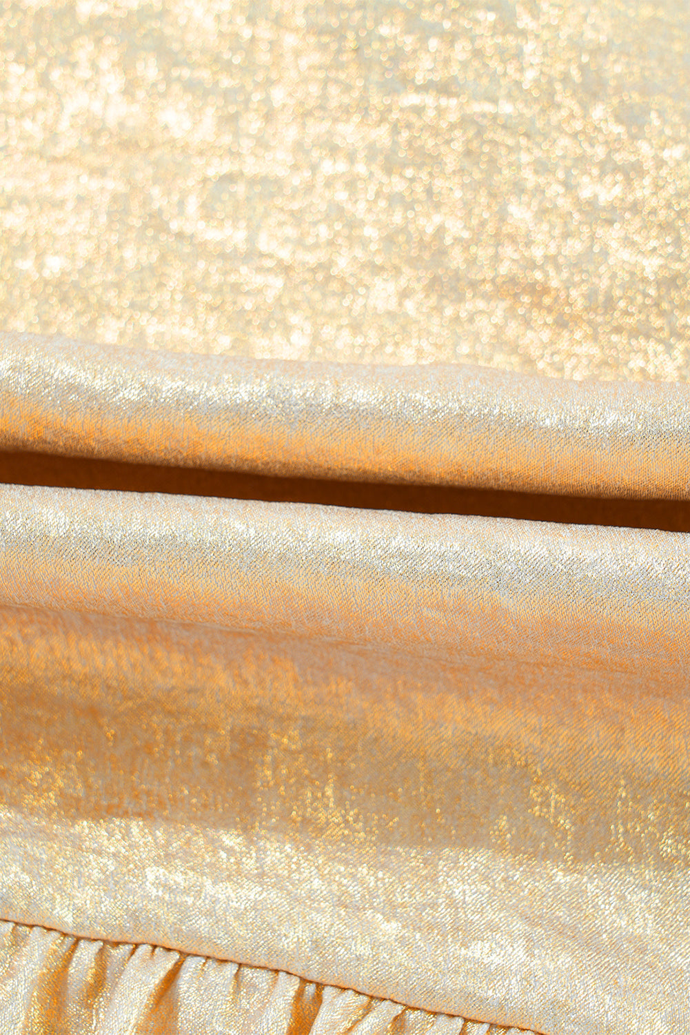 Solid Metallic V-Neck Puff Sleeve Babydoll Blouse