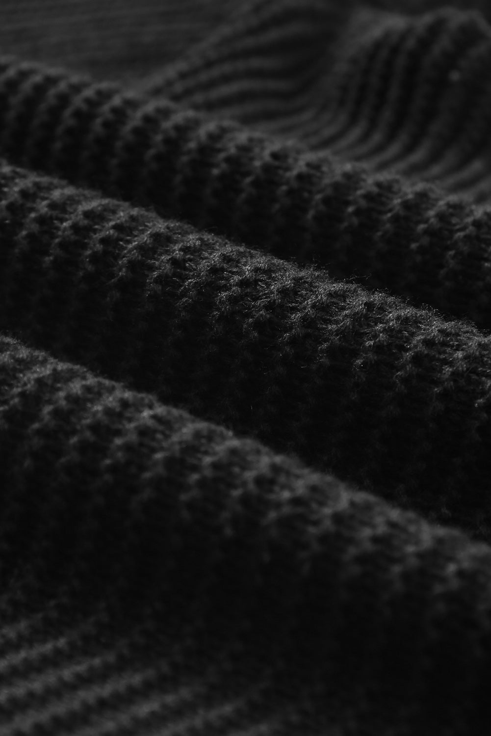 Solid Ribbed Drop Shoulder Hooded V-Neck Sweater