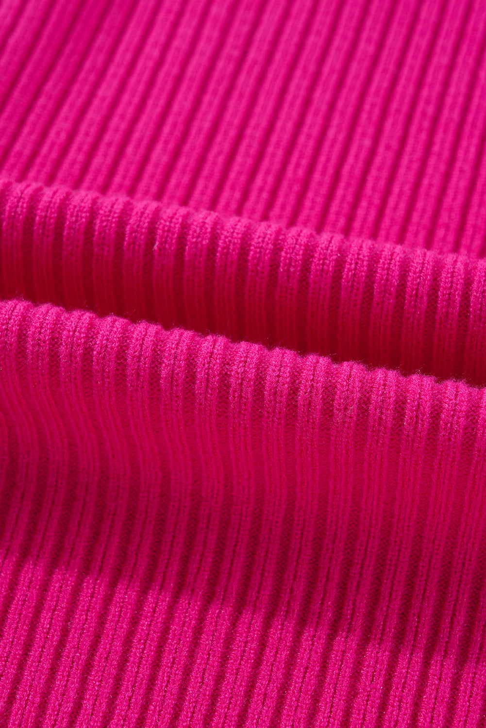 Solid Ribbed Knit Patch Pocket Short Sleeve Sweater