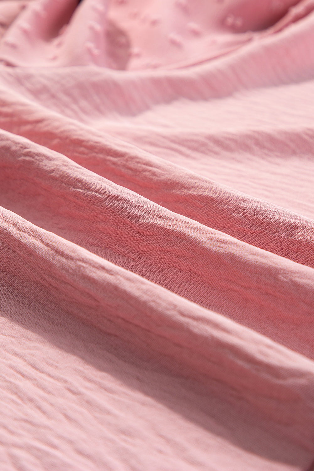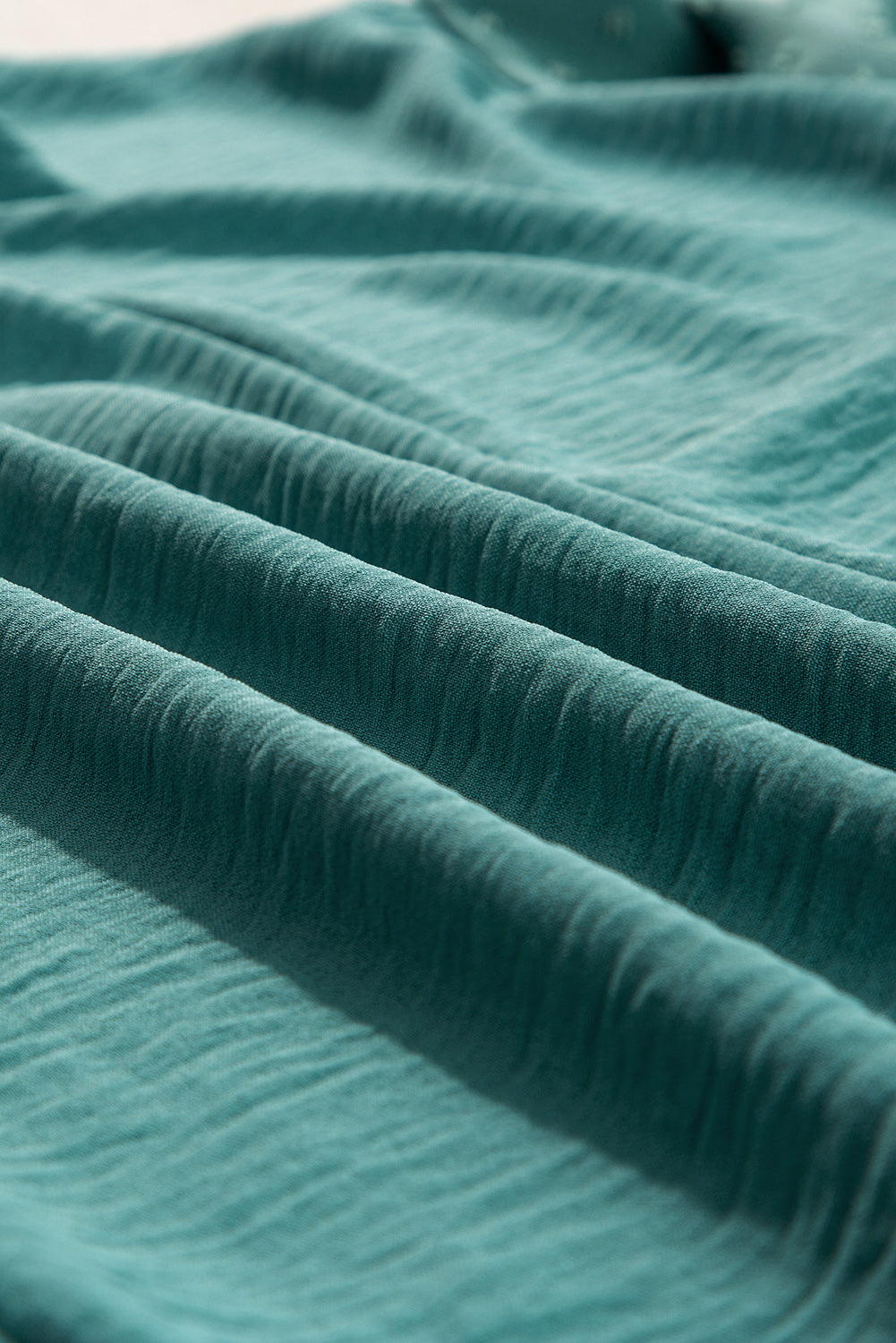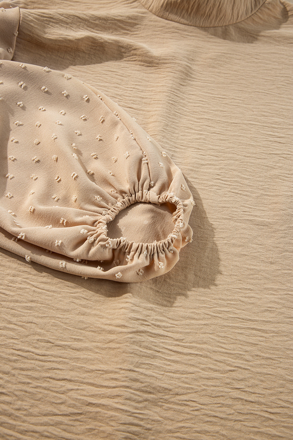 Elevate your ensemble with this blouse, featuring graceful sleeves gathered with elastic cuffs for a refined silhouette. The elegant keyhole detail at the back is secured by a delicate gold button, offering a subtle touch of sophistication. Contrasting arms adorned with a trendy pattern introduce a charming, romantic texture to this effortlessly stylish blouse.