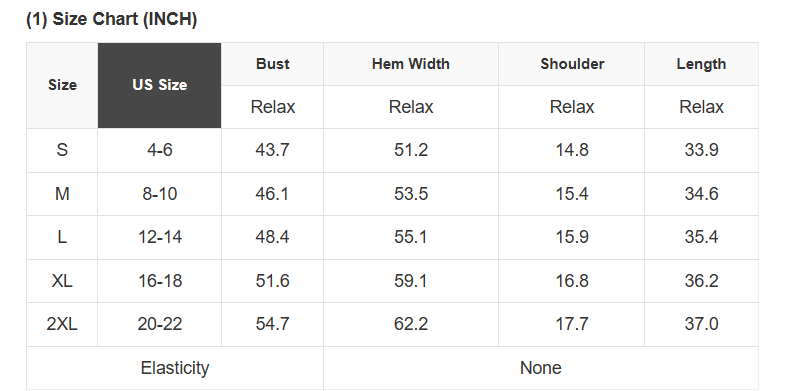 See size chart for approximate measurements.